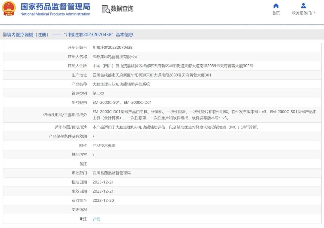 近日,水木菁创助力成都集思鸣智科技有限公司(以下简称“集思鸣智“)成功取得大脑生理与认知功能辅助评估系统创新产品注册证。